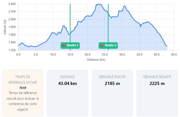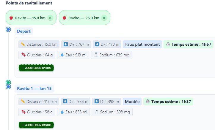 - Un temps de passage estimé pour chaque segment entre tes ravitaillements